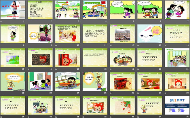 关键词:我上学了教学课件,我背上了新书包教学课件,人教版一年级上册品德与生活PPT课件下载,一年级品德与生活幻灯片课件下载,我上学了PPT课件下载,我背上了新书包PPT课件下载,.PPT格式;