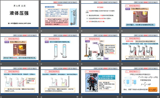 关键词:压强教学课件,液体压强教学课件,鲁教版八年级下册物理PPT课件下载,八年级物理幻灯片课件下载,压强PPT课件下载,液体压强PPT课件下载,.PPT格式;