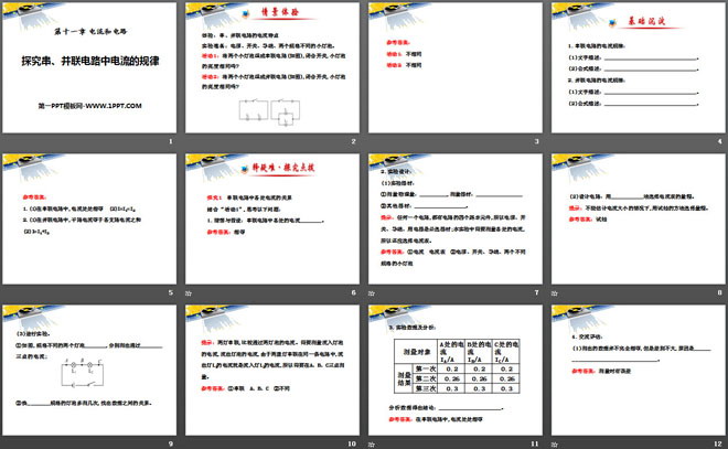 关键词:电流和电路教学课件,探究串并联电路中电流的规律教学课件,鲁教版九年级上册物理PPT课件下载,九年级物理幻灯片课件下载,电流和电路PPT课件下载,探究串并联电路中电流的规律PPT课件下载,.PPT格式;