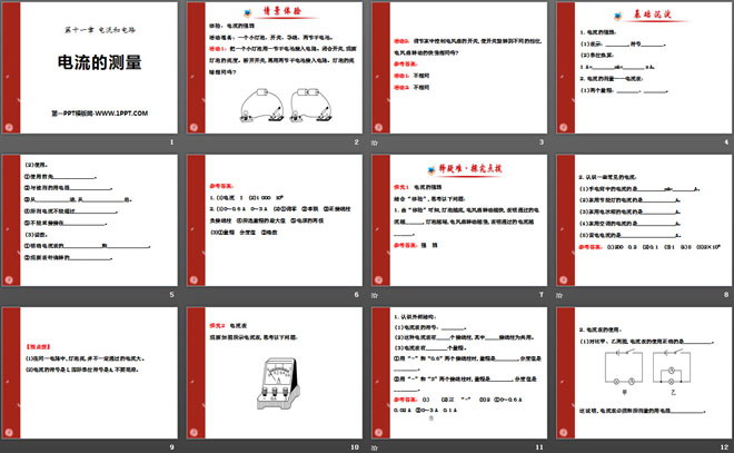 关键词:电流和电路教学课件,电流的测量教学课件,鲁教版九年级上册物理PPT课件下载,九年级物理幻灯片课件下载,电流和电路PPT课件下载,电流的测量PPT课件下载,.PPT格式;
