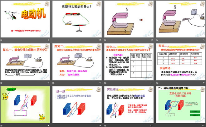 关键词:电磁现象教学课件,电动机教学课件,鲁教版九年级下册物理PPT课件下载,九年级物理幻灯片课件下载,电磁现象PPT课件下载,电动机PPT课件下载,.PPT格式;