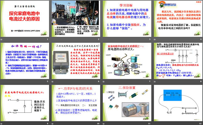 《探究家庭电路中电流过大的原因》安全用电PPT课件