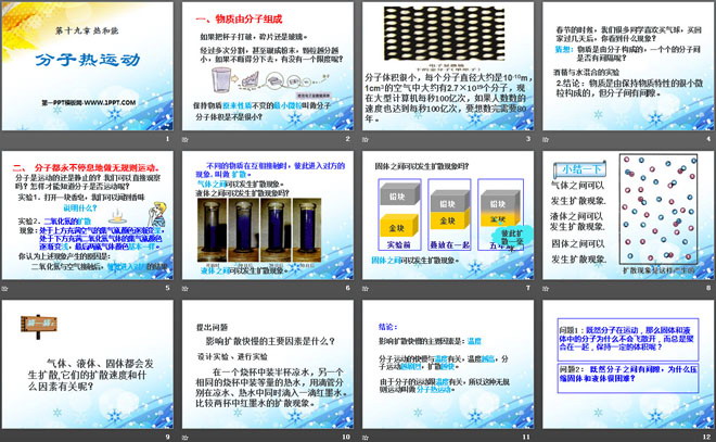 关键词:热和能教学课件,分子热运动教学课件,鲁教版九年级下册物理PPT课件下载,九年级物理幻灯片课件下载,热和能PPT课件下载,分子热运动PPT课件下载,.PPT格式;