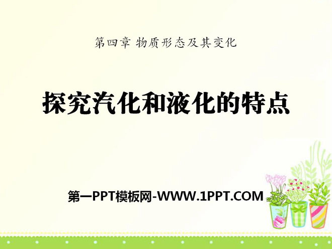 关键词:物质形态及其变化教学课件,探究汽化和液化的特点教学课件,粤沪版八年级上册物理PPT课件下载,八年级物理幻灯片课件下载,物质形态及其变化PPT课件下载,探究汽化和液化的特点PPT课件下载,.PPT格式;