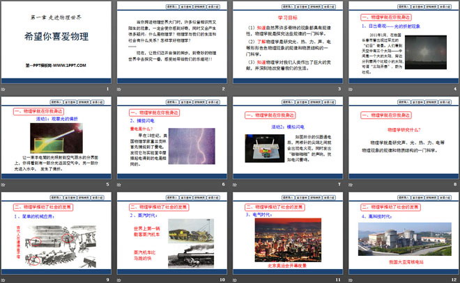 (3)知道物理学对我们人类作出了巨大的贡献,并深刻地改变着我们的生活。
