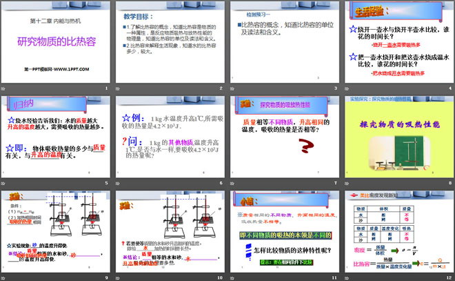 关键词:内能与热机教学课件,研究物质的比热容教学课件,粤沪版九年级上册物理PPT课件下载,九年级物理幻灯片课件下载,内能与热机PPT课件下载,研究物质的比热容PPT课件下载,.PPT格式;
