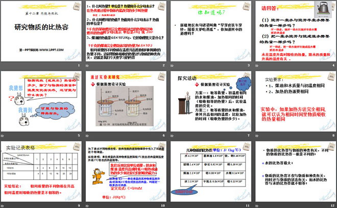 关键词:内能与热机教学课件,研究物质的比热容教学课件,粤沪版九年级上册物理PPT课件下载,九年级物理幻灯片课件下载,内能与热机PPT课件下载,研究物质的比热容PPT课件下载,.PPT格式;