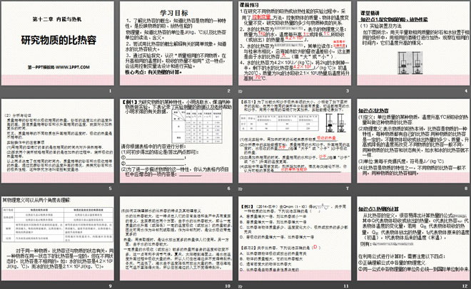 关键词:内能与热机教学课件,研究物质的比热容教学课件,粤沪版九年级上册物理PPT课件下载,九年级物理幻灯片课件下载,内能与热机PPT课件下载,研究物质的比热容PPT课件下载,.PPT格式;
