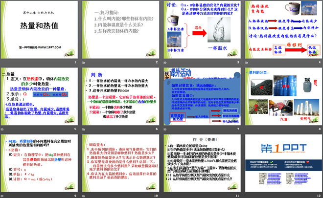 关键词:内能与热机教学课件,热量和热值教学课件,粤沪版九年级上册物理PPT课件下载,九年级物理幻灯片课件下载,内能与热机PPT课件下载,热量和热值PPT课件下载,.PPT格式;