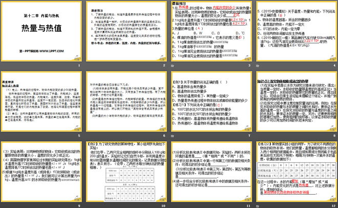 关键词:内能与热机教学课件,热量和热值教学课件,粤沪版九年级上册物理PPT课件下载,九年级物理幻灯片课件下载,内能与热机PPT课件下载,热量和热值PPT课件下载,.PPT格式;