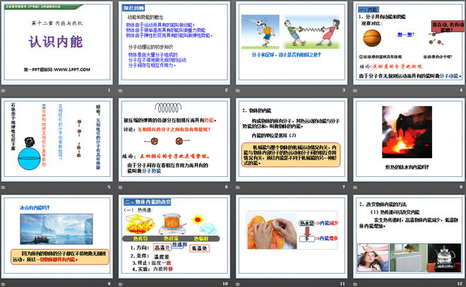 关键词:内能与热机教学课件,认识内能教学课件,粤沪版九年级上册物理PPT课件下载,九年级物理幻灯片课件下载,内能与热机PPT课件下载,认识内能PPT课件下载,.PPT格式;