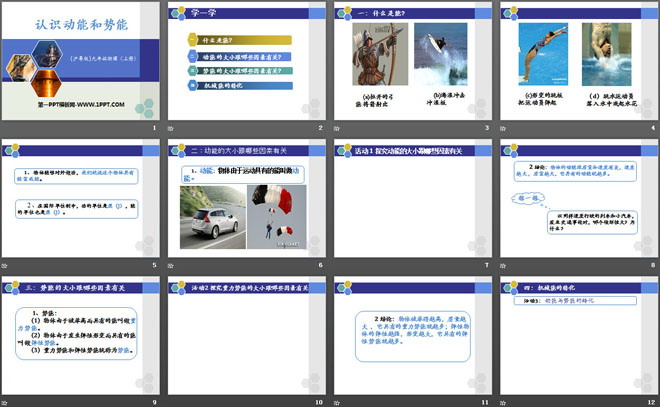 关键词:机械功与机械能教学课件,认识动能和势能教学课件,粤沪版九年级上册物理PPT课件下载,九年级物理幻灯片课件下载,机械功与机械能PPT课件下载,认识动能和势能PPT课件下载,.PPT格式;