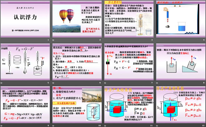 关键词:浮力与升力教学课件,认识浮力教学课件,粤沪版八年级下册物理PPT课件下载,八年级物理幻灯片课件下载,浮力与升力PPT课件下载,认识浮力PPT课件下载,.PPT格式;