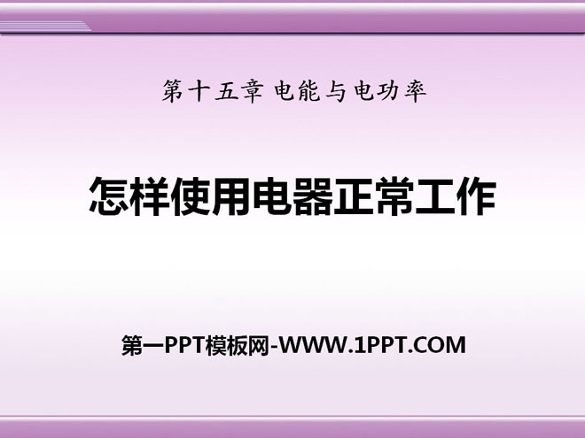 关键词:电能与电功率教学课件,怎样使用电器正常工作教学课件,粤沪版九年级上册物理PPT课件下载,九年级物理幻灯片课件下载,电能与电功率PPT课件下载,怎样使用电器正常工作PPT课件下载,.PPT格式;