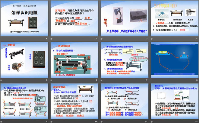 关键词:探究欧姆定律教学课件,怎样认识电阻教学课件,粤沪版九年级上册物理PPT课件下载,九年级物理幻灯片课件下载,探究欧姆定律PPT课件下载,怎样认识电阻PPT课件下载,.PPT格式;