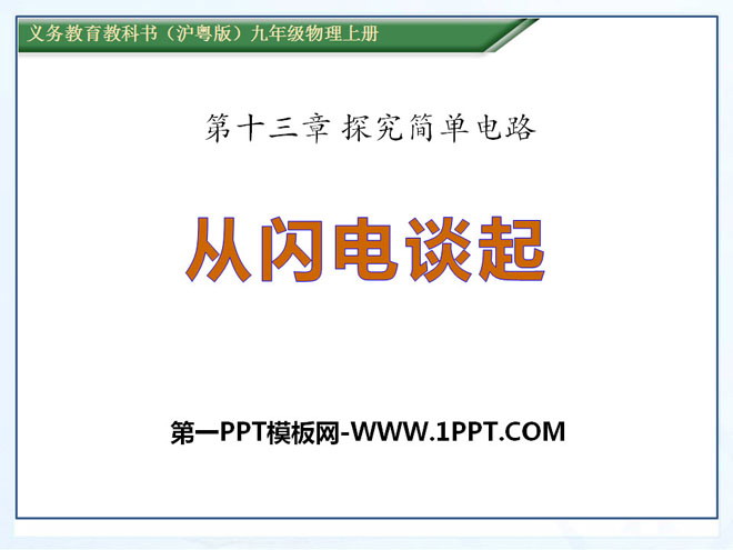 关键词:探究简单电路教学课件,从闪电谈起教学课件,粤沪版九年级上册物理PPT课件下载,九年级物理幻灯片课件下载,探究简单电路PPT课件下载,从闪电谈起PPT课件下载,.PPT格式;