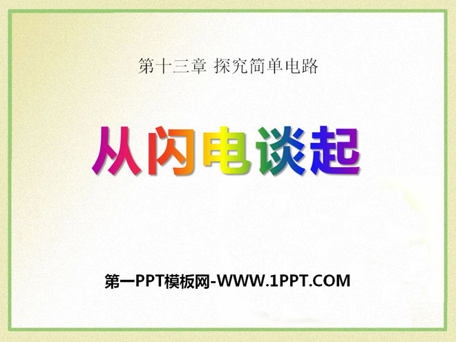 关键词:探究简单电路教学课件,从闪电谈起教学课件,粤沪版九年级上册物理PPT课件下载,九年级物理幻灯片课件下载,探究简单电路PPT课件下载,从闪电谈起PPT课件下载,.PPT格式;