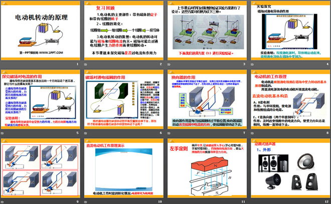关键词:电动机与发电机教学课件,电动机转动的原理教学课件,粤沪版九年级下册物理PPT课件下载,九年级物理幻灯片课件下载,电动机与发电机PPT课件下载,电动机转动的原理PPT课件下载,.PPT格式;