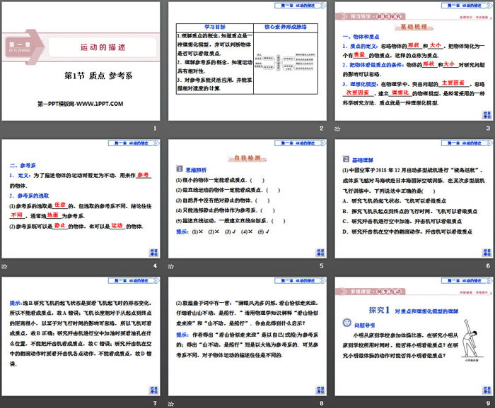 关键词:人教版高中物理必修一PPT课件免费下载,质点参考系PPT下载,运动的描述PPT下载,.PPT格式;