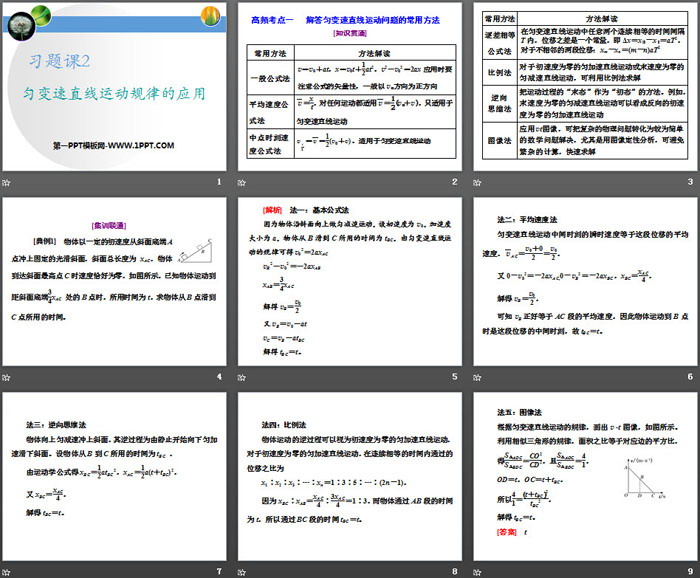 关键词:人教版高中物理必修一PPT课件免费下载,匀变速直线运动规律的应用PPT下载,匀变速直线运动的研究PPT下载,.PPT格式;