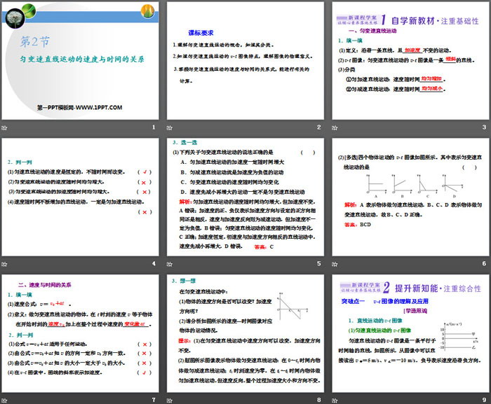 匀变速直线运动的速度与时间的关系PPT,第三部分内容:提升新知能