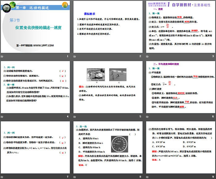 位置变化快慢的描述速度PPT,第二部分内容:自学新教材
