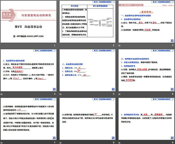 关键词:鲁科版高中物理必修一PPT课件免费下载,自由落体运动PPT下载,匀变速直线运动的研究PPT下载,.PPT格式;