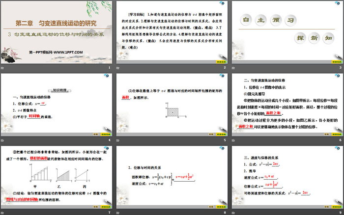 关键词:鲁科版高中物理必修一PPT课件免费下载,匀变速直线运动的位移与时间的关系PPT下载,匀变速直线运动的研究PPT下载,.PPT格式;
