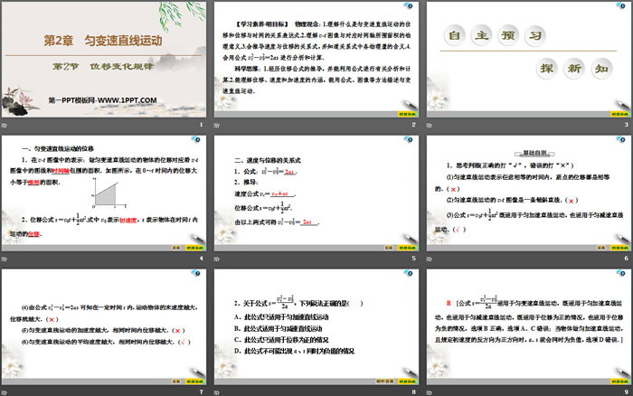 关键词:鲁科版高中物理必修一PPT课件免费下载,位移变化规律PPT下载,匀变速直线运动的研究PPT下载,.PPT格式;