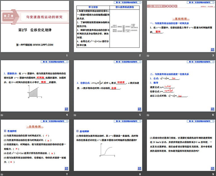 关键词:鲁科版高中物理必修一PPT课件免费下载,位移变化规律PPT下载,匀变速直线运动的研究PPT下载,.PPT格式;