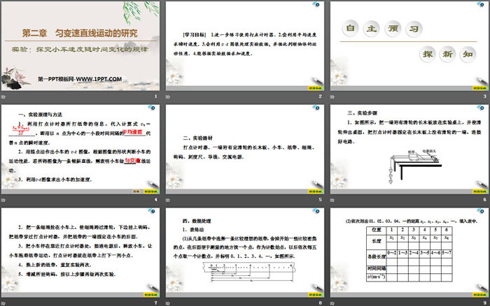 关键词:鲁科版高中物理必修一PPT课件免费下载,实验探究小车速度随时间变化的规律PPT下载,匀变速直线运动的研究PPT下载,.PPT格式;