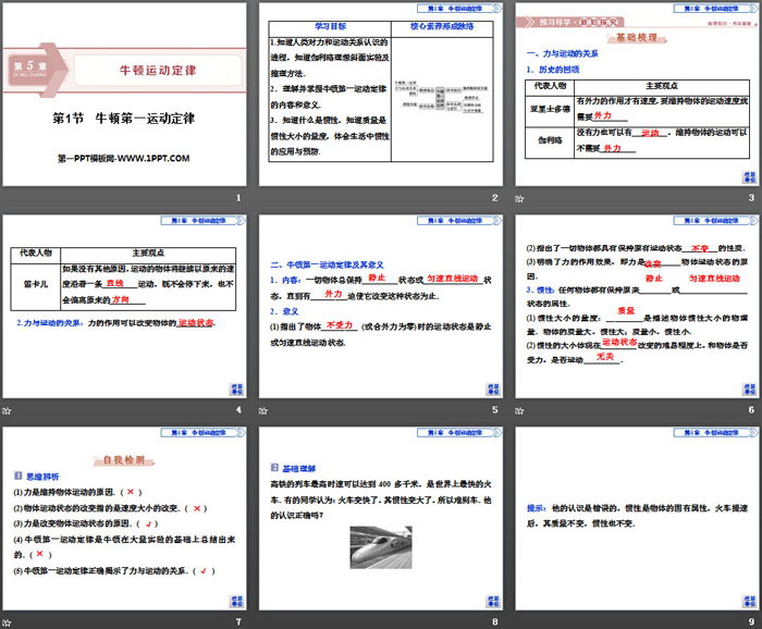 关键词:鲁科版高中物理必修一PPT课件免费下载,牛顿运动定律PPT下载,牛顿第一运动定律PPT下载,.PPT格式;