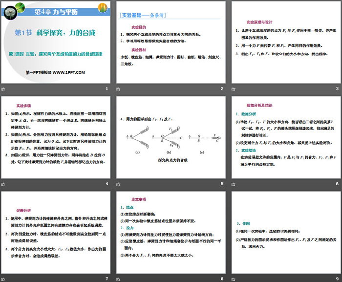 关键词:鲁科版高中物理必修一PPT课件免费下载,科学探究力的合成PPT下载,力与平衡PPT下载,探究两个互成角度的力的合成规律PPT下载,.PPT格式;
