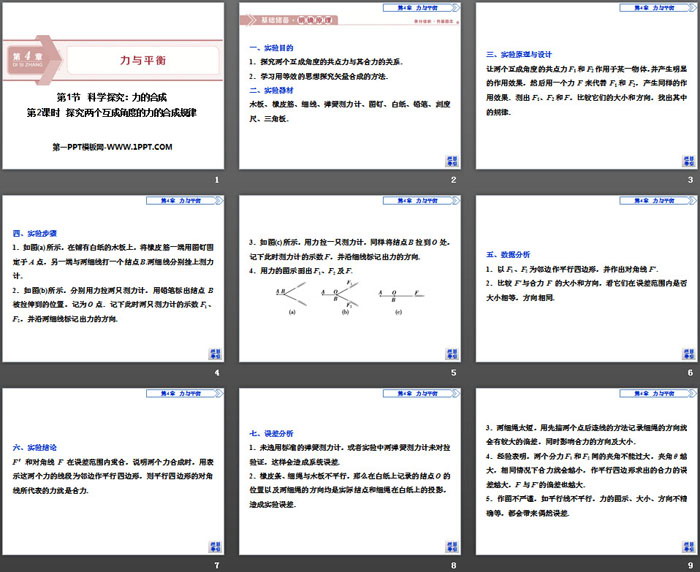 关键词:鲁科版高中物理必修一PPT课件免费下载,科学探究力的合成PPT下载,力与平衡PPT下载,探究两个互成角度的力的合成规律PPT下载,.PPT格式;