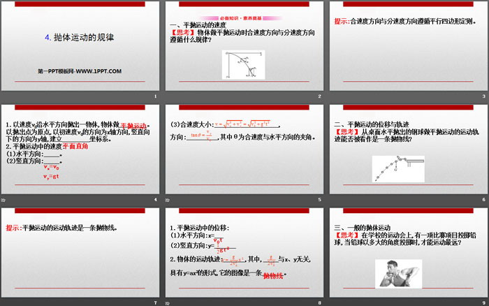 关键词:人教版高中物理必修二PPT课件免费下载,抛体运动的规律PPT下载,抛体运动PPT下载,.PPT格式;