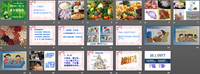 关键词:我的一天教学课件,我会好好吃教学课件,人教版一年级上册品德与生活PPT课件下载,一年级品德与生活幻灯片课件下载,我的一天PPT课件下载,我会好好吃PPT课件下载,.PPT格式;