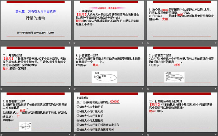 关键词:人教版高中物理必修二PPT课件免费下载,行星的运动PPT下载,万有引力与宇宙航行PPT下载,.PPT格式;