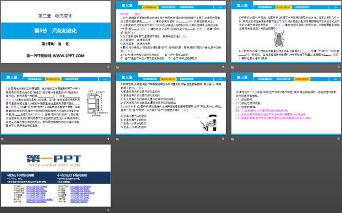 关键词:人教版八年级物理上册PPT课件免费下载,汽化和液化PPT下载,物态变化PPT下载,液化PPT下载,.PPT格式;