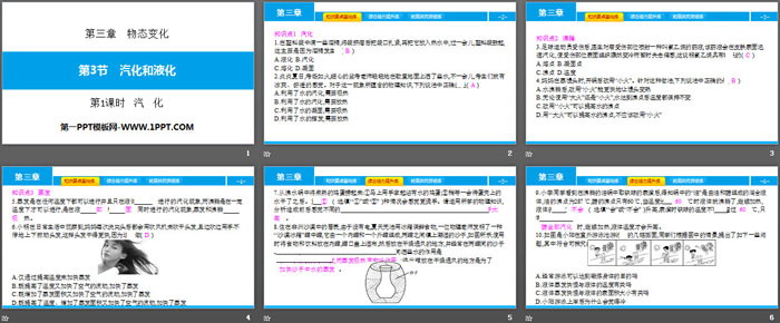 关键词:人教版八年级物理上册PPT课件免费下载,汽化和液化PPT下载,物态变化PPT下载,汽化PPT下载,.PPT格式;