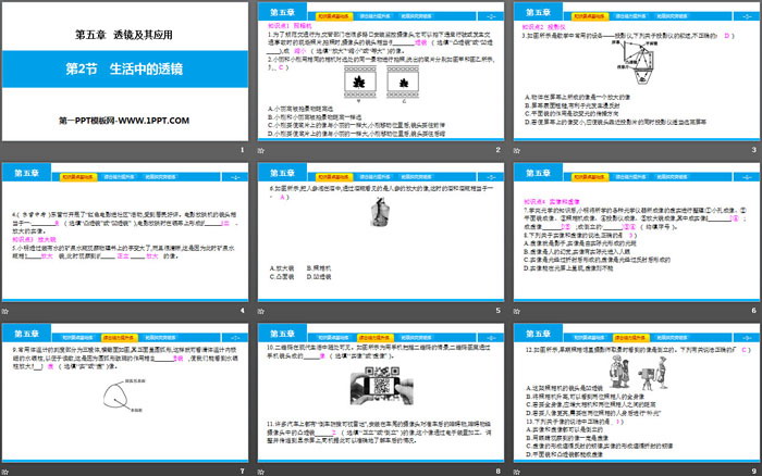 关键词:人教版八年级物理上册PPT课件免费下载,生活中的透镜PPT下载,透镜及其应用PPT下载,.PPT格式;