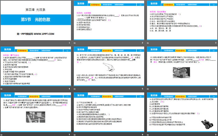 关键词:人教版八年级物理上册PPT课件免费下载,光的色散PPT下载,光现象PPT下载,.PPT格式;