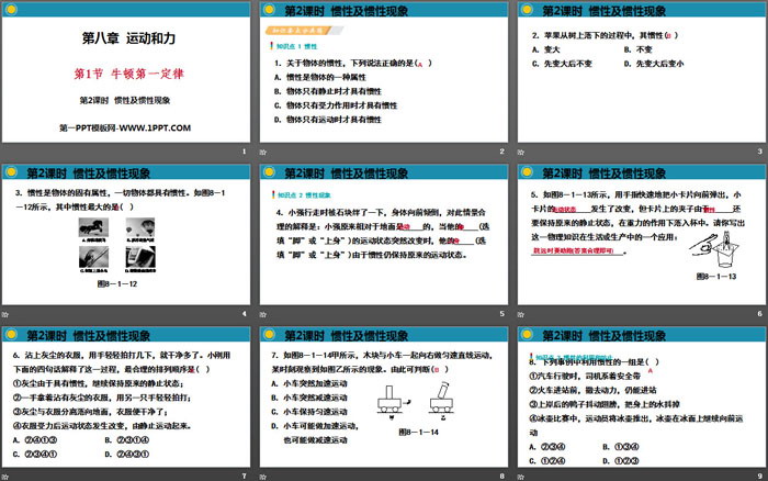 关键词:人教版八年级物理下册PPT课件免费下载,牛顿第一定律PPT下载,运动和力PPT下载,惯性及惯性现象PPT下载,.PPT格式;