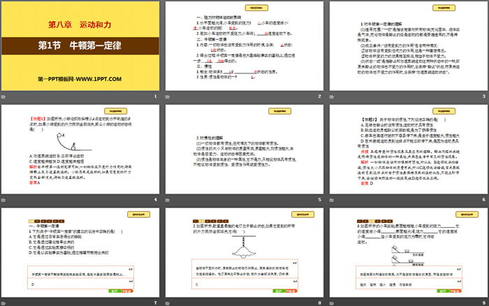 《牛顿第一定律》运动和力PPT下载