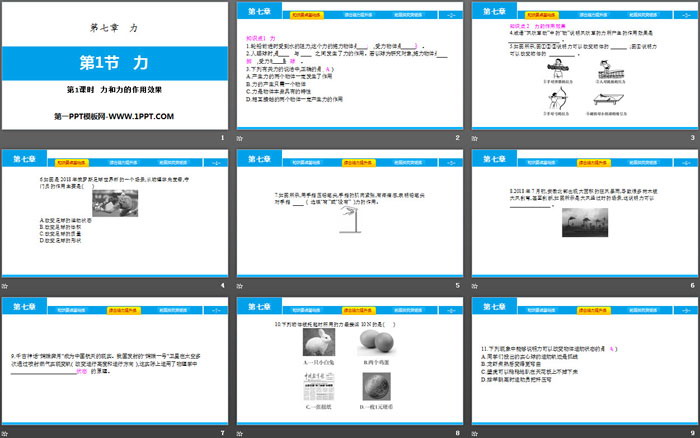 关键词:人教版八年级物理下册PPT课件免费下载,力PPT下载,力和力的作用效果PPT下载,.PPT格式;