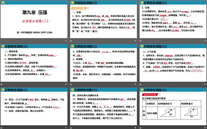 关键词:人教版八年级物理下册PPT课件免费下载,分类综合训练PPT下载,压强PPT下载,.PPT格式;