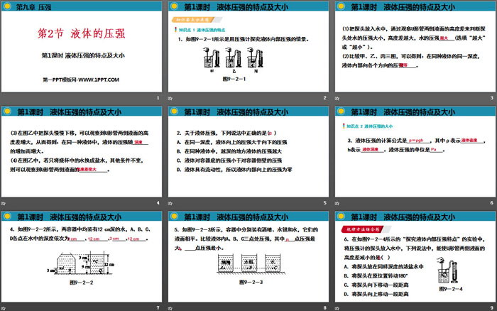 关键词:人教版八年级物理下册PPT课件免费下载,液体的压强PPT下载,压强PPT下载,液体压强的特点及大小PPT下载,.PPT格式;