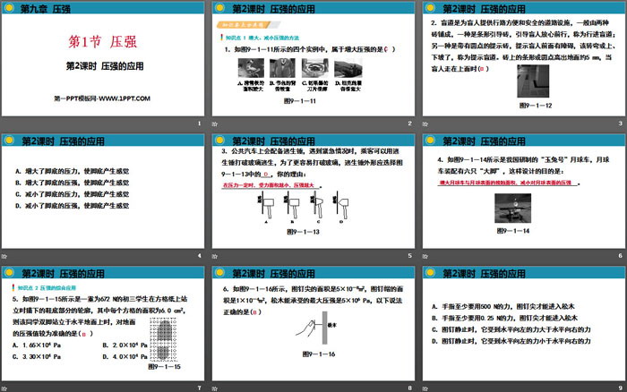 关键词:人教版八年级物理下册PPT课件免费下载,压强PPT下载,压强的应用PPT下载,.PPT格式;