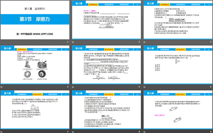 关键词:人教版八年级物理下册PPT课件免费下载,摩擦力PPT下载,运动和力PPT下载,.PPT格式;