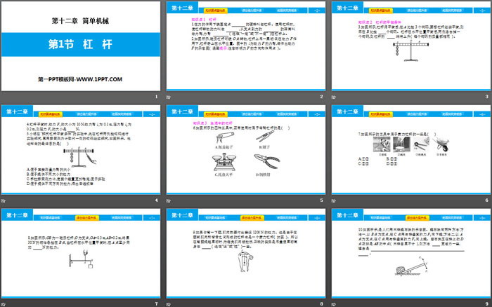 关键词:人教版八年级物理下册PPT课件免费下载,杠杆PPT下载,简单机械PPT下载,.PPT格式;