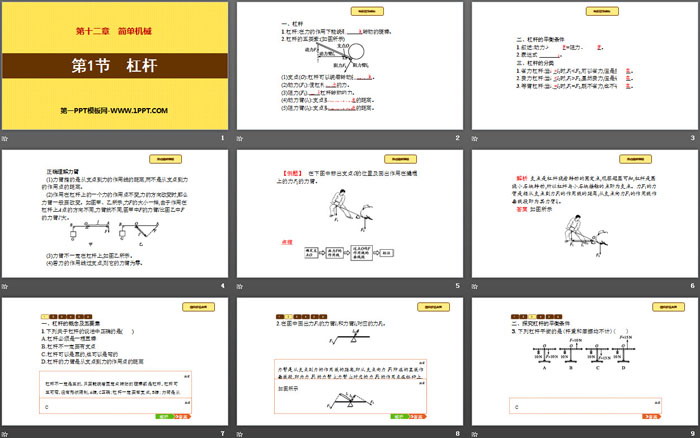关键词:人教版八年级物理下册PPT课件免费下载,杠杆PPT下载,简单机械PPT下载,.PPT格式;